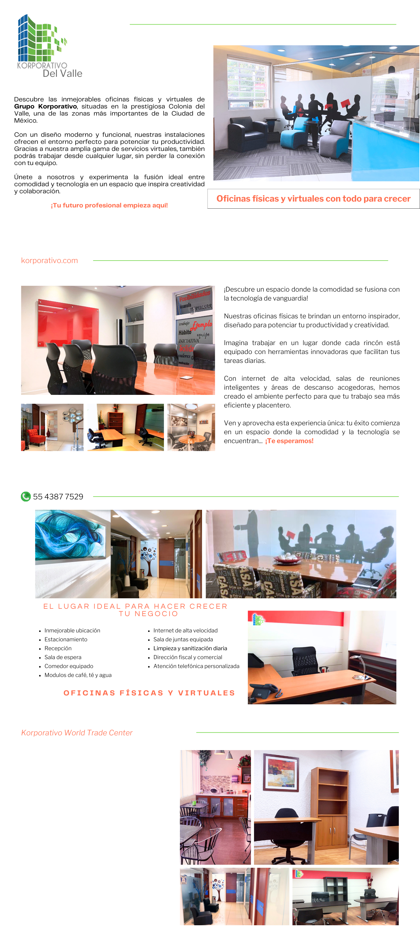 KORPORATIVO, somos líderes en centros de negocios, profesionales en renta de oficinas físicas, oficinas virtuales (Home Office), salas de juntas y salas de capacitación.(**)
